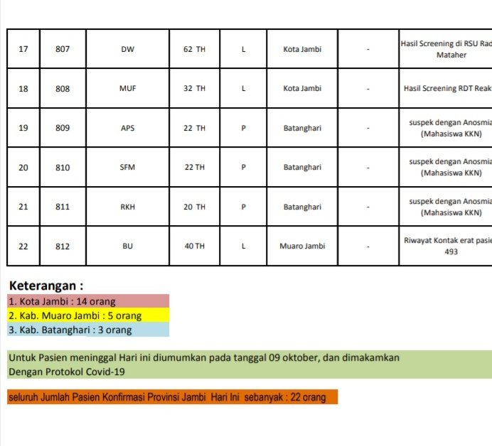 Selain 2 ASN ini, ada 20 orang lainnya ikut terpapar Corona di Provinsi Jambi, yang berasal dari Kota Jambi, Muarojambi dan Batanghari.