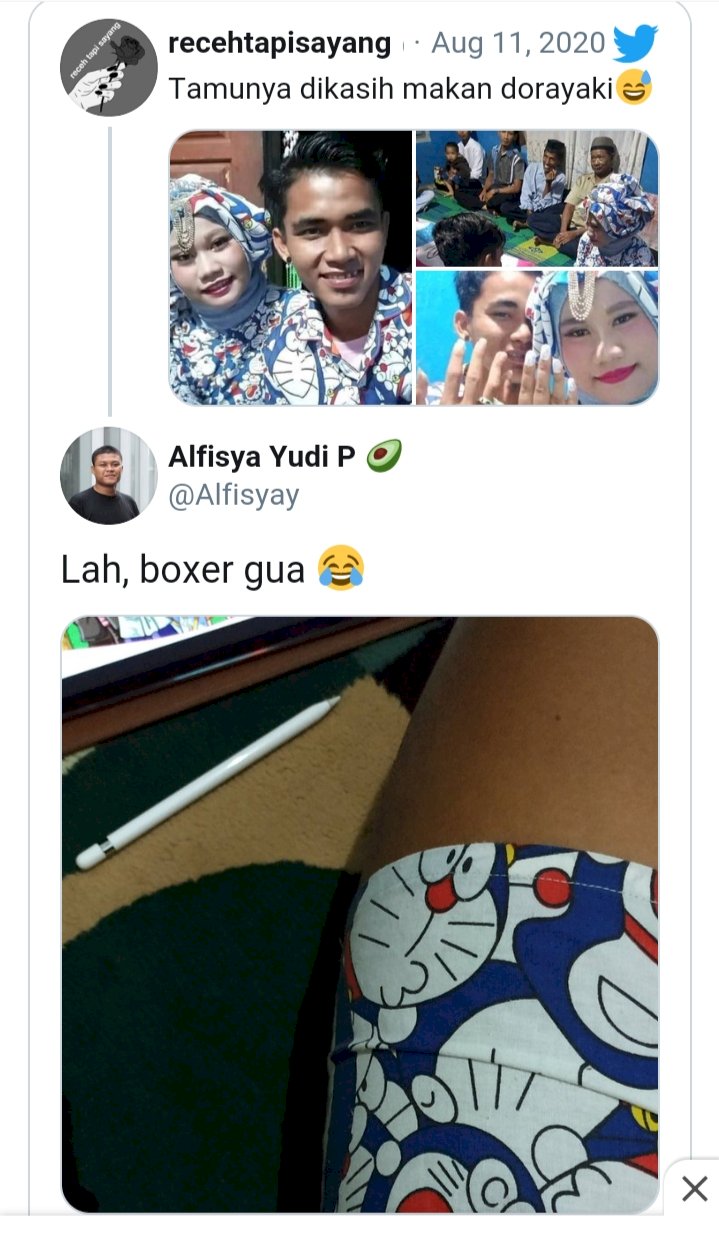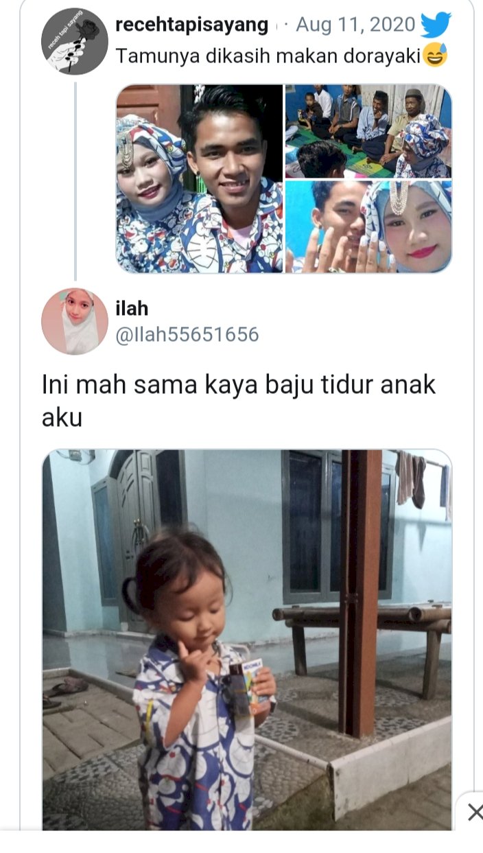 Tak sedikit yang lantas memberikan komentarnya. Banyak yang mengatakan bahwa baju pengantin bergambar Doraemon tersebut justru mirip dengan pakaian mereka.