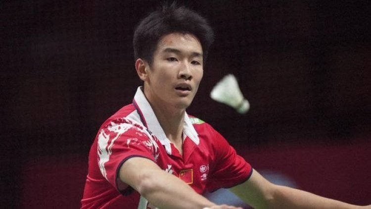 s Li Shi Feng eyes the shuttlecock during a mens single match in the Thomas Cup mens team Badminton match between India and China, in Aarhus, Denmark, Thursday Oct. 14, 2021. (Claus Fisker/Ritzau Scanpix via AP)" title="Denmark Badminton" />Li Shi Feng. (AP/Claus Fisker)