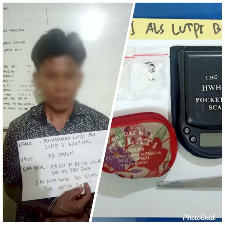 "Betul, penangkapan dilakukan setelah pengembangan dari kedua pelaku sebelumnya yang ditangkap di Sungai Mancur. Pelaku bernama M Lutpi warga Seberang Jaya, Bathin II Pelayang ditangkap sekira pukul 17.00 WIB, Kamis (27/2) oleh anggota Satresnarkoba Polres Bungo," papar Kapolres.