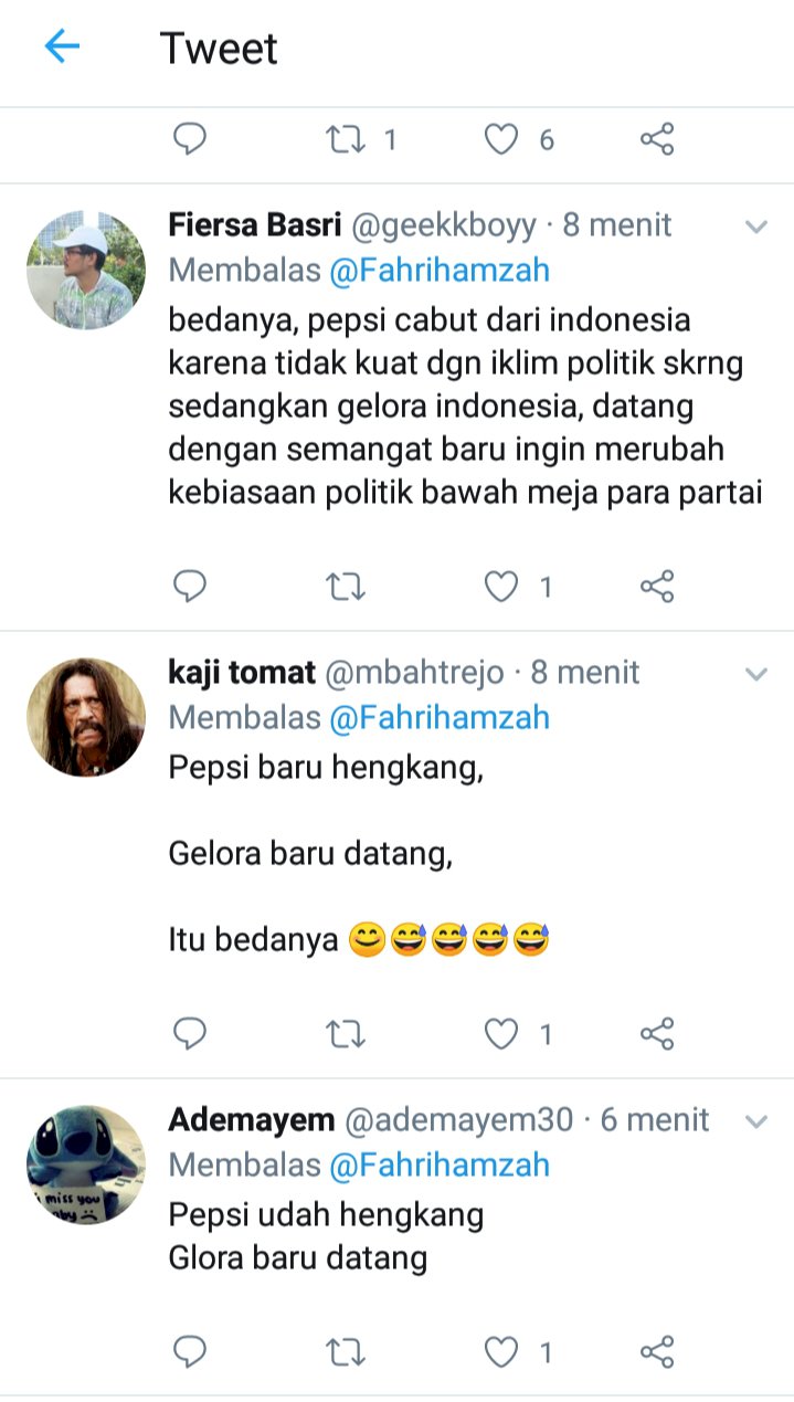 Ada pula membalas "Bedanya pepsi out gelora in," tulis Rizal M Zaid.