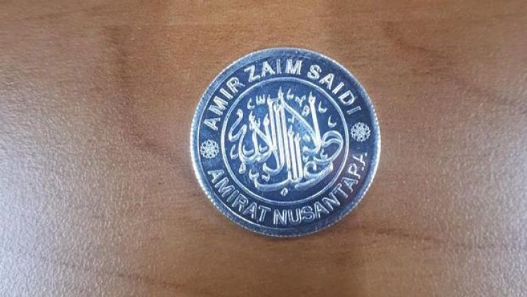 Di koin dinar dan dirham yang disita poli, tertera tulisan 'Amir Zaim Saidi', ukiran kaligrafi Arab, dan tulisan 'Amirat Nusantara'.