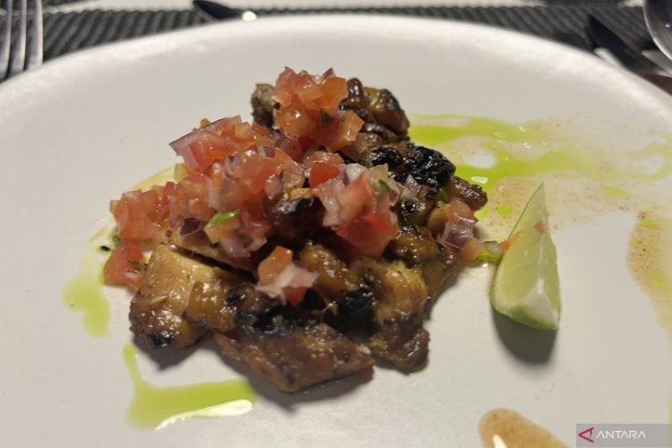 Pramusaji terlebih dahulu menuangkan air putih ke dalam gelas yang bisa diminum untuk mengusir rasa tegang. Menu pertama yang disuguhkan adalah cilantro-lime chicken ala Meksiko dengan pugasan saus salsa yang asam dari potongan tomat dan daun ketumbar serta rempah-rempah lain. Daging ayam yang disajikan empuk, gurih di dalam dan renyah di luar. Untuk menambah cita rasa segar, ada potongan jeruk nipis yang bisa diperas di atas hidangan ayam tersebut.