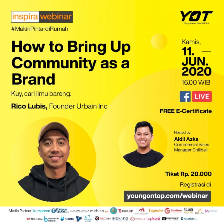 Nah, kalo kamu pengen tau lebih dalam tips sukses dari Rico Lubis mendirikan clothing line, kalian bisa ngobrol langsung sama Rico di Inspira Webinar #MakinPintardiRumah: ‘How to Bring Up Community as a Brand’ bareng Rico Lubis, Founder Urbain Inc, hari Kamis, 11 Juni 2020, pukul 16.00 WIB. Ini dia detail acaranya: