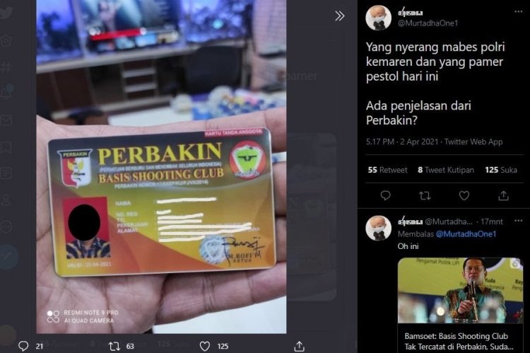 Beredar kartu tanda anggota (KTA) Perbakin milik pengemudi Fortuner yang melakukan aksi koboi mengacungkan pistol di Duren Sawit, Jakarta Timur. PB Perbakin memastikan yang bersangkutan bukan anggota Perbakin. "Sudah saya pastikan bukan anggota Perbakin," kata Sekjen PB Perbakin, Firtian Judiswandarta saat dihubungi, Jumat (2/4/2021).