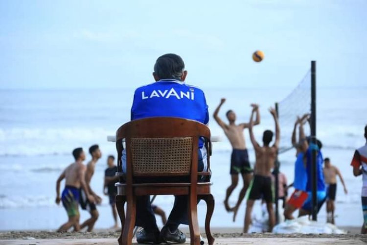 Dia juga mengaku berkesempatan menonton latihan Tim voli Tim LavAni di Pantai Teleng Ria bersama cucu-cucu.