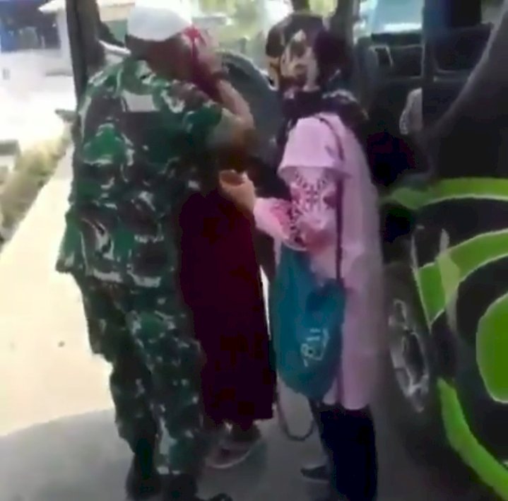 Video ini dibagikan akun Twitter @iskandar_fauzi. Bisa dijelaskan, di awal video perekam memperlihatkan seorang pria berseragam TNI jalan mengarah ke mini bus. Saat berada di dekat pintu kendaraan, si pria yang belum diketahui identitasnya itu seperti menunggu seseorang.