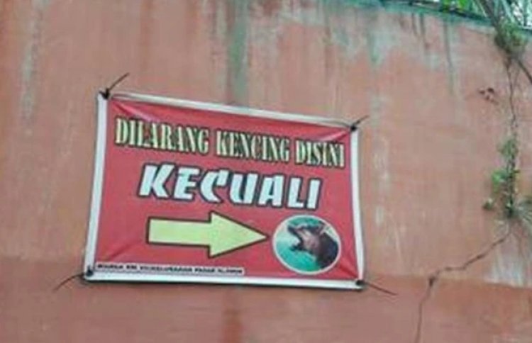 BRITO.ID, BERITA VIRAL - Peraturan dibuat untuk mendisiplinkan orang agar tidak keluar batas. Begitu juga halnya dengan pemberitahuan yang terpasang di tempat umum, contohnya saja dilarang kencing sembarangan.