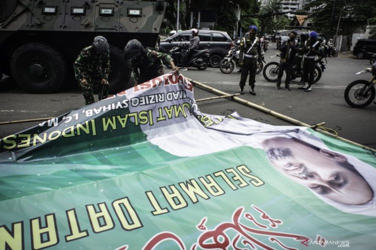 Satpol PP bersama TNI dan Polri sebelumnya telah melaksanakan penertiban spanduk FPI dan Rizieq Shihab.
