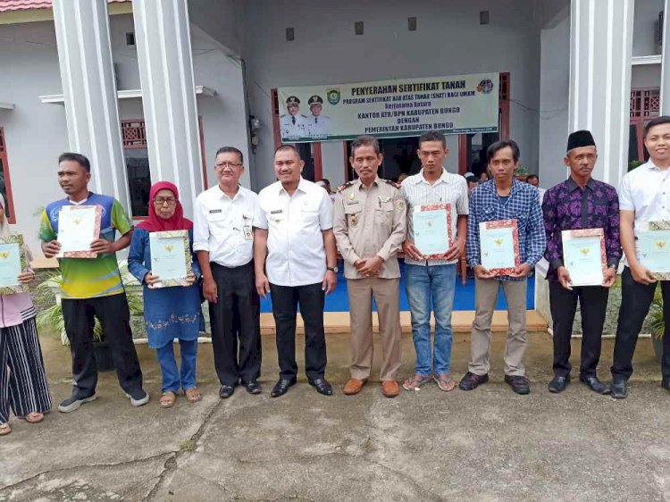 "Untuk diketahui sertifikat tanah ini sangat penting sebagai dasar bukti kepemilikan tanah yang sah serta memberikan kepastian hak atas kepemilikan tanah, serta perlindungan yang berkekuatan hukum dan secara otomatis akan mengurangi sengketa yang terjadi," kata Bupati Bungo H.Mashuri.