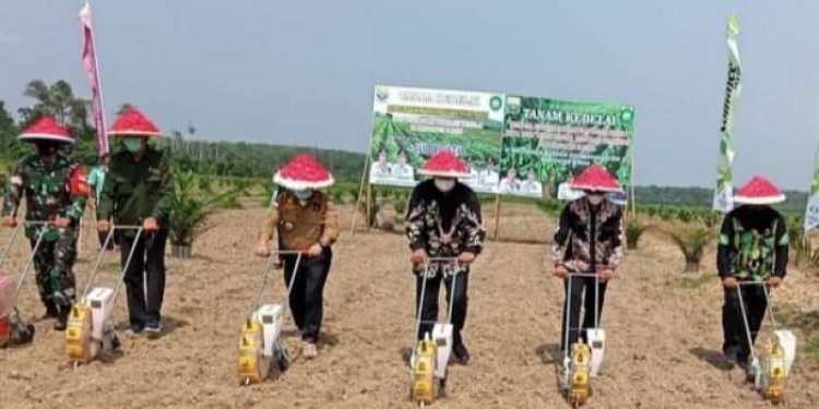 Bupati dan forkopimda Bungo melakukan tanam Kedelai. Mendampingi Gubernur besama rombongan berkesempatan menanam kedelai, lokasi kelompok tani Binjai Jaya di Kelurahan Manggis Kecamatan Bathin III. Usai penanaman Kedelai, Gubernur melanjutkan penyerahan bantuan benih dan Saprodi pertanian secara simbolis.
