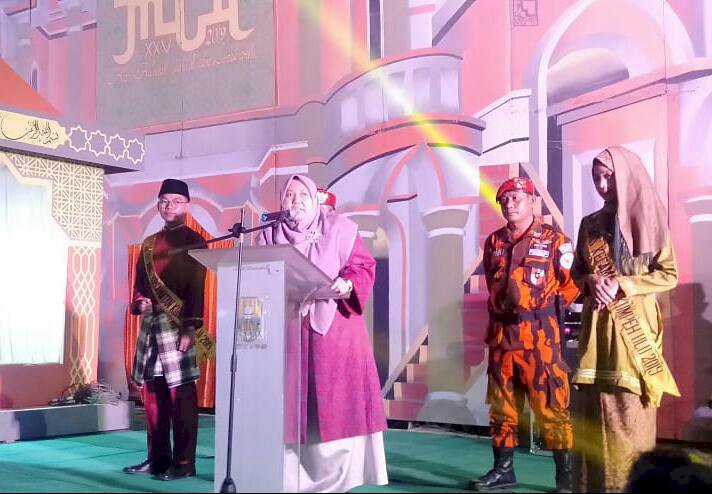 BRITO.ID, BERITA MUAROJAMBI - Bupati Muarojambi Hj Masnah Busyro membuka secara resmi Musabaqah Tilawatil Qur'an (MTQ) ke-25 Muarojambi Sabtu (5/10/19) malam.