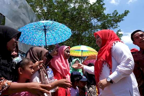 BRITO.ID, BERITA MUAROJAMBI - Bupati Muarojambi Masnah Busro menghadiri pesta rakyat di Kecamatan Kumpeh Muarojambi Minggu (18/8/19).