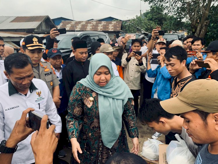 Bupati Masnah Salurkan Bantuan Untuk Korban Bedeng Ambruk di Jaluko Muarojambi