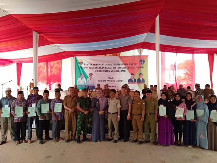 BRITO.ID, BERITA MUAROJAMBI - Bupati Muarojambi Hj Masnah Busyro, Selasa (25/6/19) secara simbolis menyerahkan 300 lembar sertifikat tanah untuk warga Muarokumpeh, Kecamatan Kumpeh Ulu.