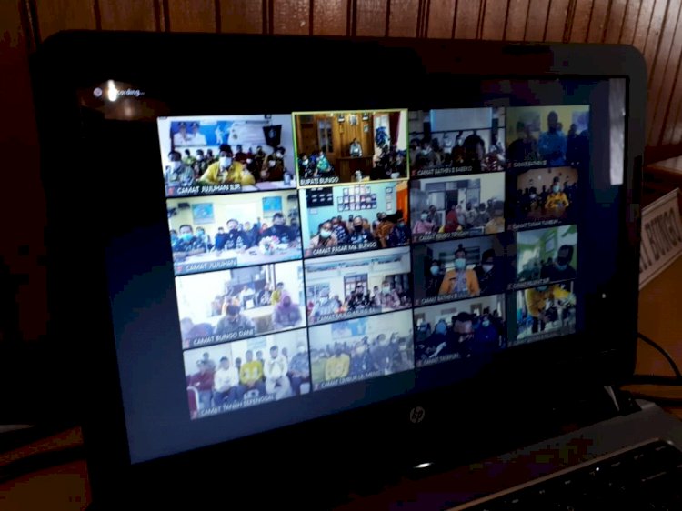 BRITO.ID BERITA BUNGO -Bupati Bungo H Mashuri mengadakan Video Conference (vicon) bersama Camat se Kabupaten Bungo membahas pencegahan virus Corona di Kabupaten Bungo, sekaligus menghadapi Bulan Ramadhan, Kamis (23/4).
