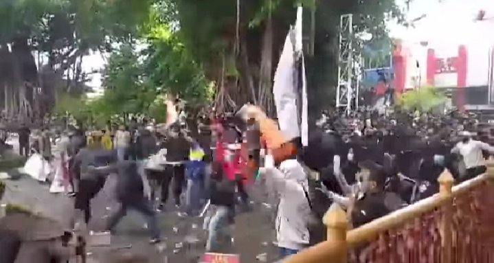 Diketahui, massa aksi tolak Omnibus Law UU Cipta Kerja menggelar demonstrasi di depan DPRD DIY. Aksi tersebut diwarnai kericuhan hingga polisi terpaksa menembakkan gas air mata.