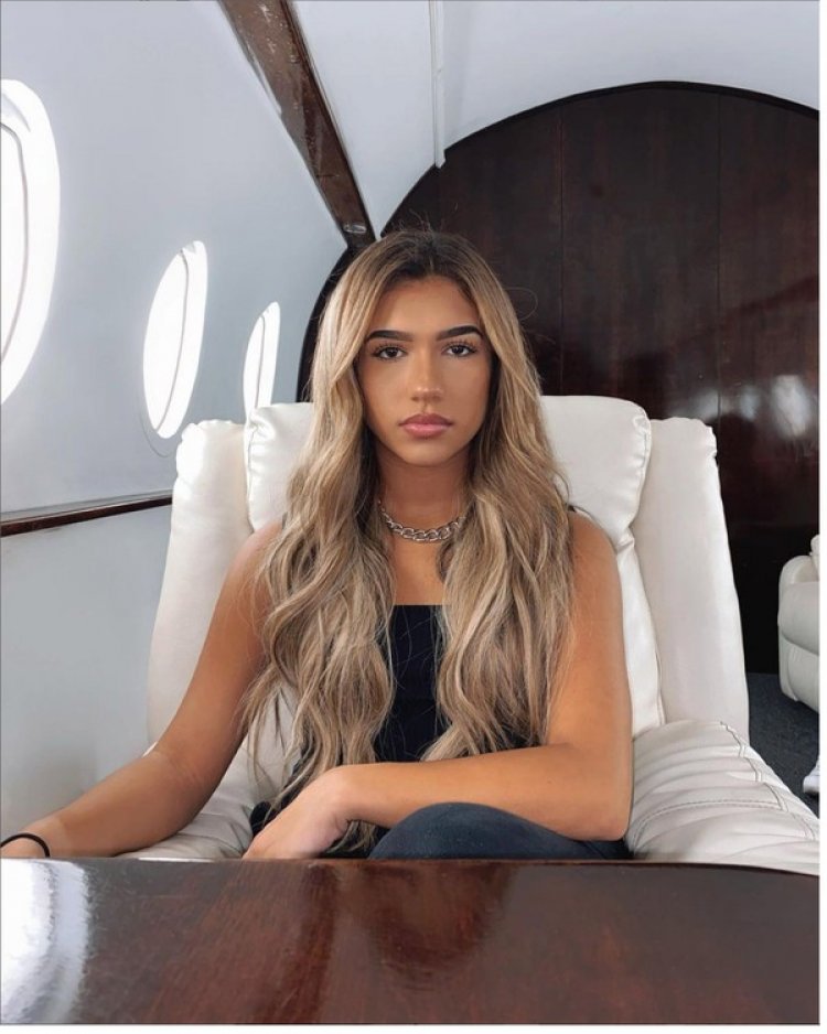Azra Mian mengunggah fotonya berpose duduk di kursi pesawat jet pribadi pada September 2020. “nExt StOp,” demikian dia menulis pada keterangan fotonya.