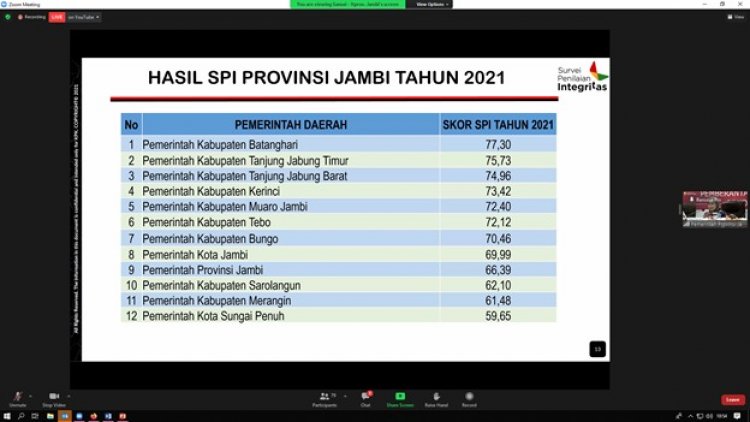 Ia menyebut, skor SPI Provinsi Jambi sebesar 66,39 pada tahun 2021. Angka itu masih di bawah rata-rata skor SPI nasional sebesar 72,4. Khusus di wilayah Provinsi Jambi, skor SPI tertinggi diraih Pemerintah Kabupaten Batanghari sebesar 77,30. Sedangkan skor SPI terendah diraih Kota Sungai Penuh dengan skor 59,65.