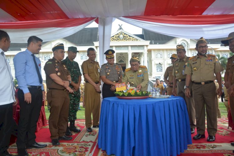 BRITO.ID, BERITA JAMBI - Gubernur Jambi Dr Drs H Fachrori Umar, M.Hum, bertindak sebagai Inspektur Upacara Peringatan Bulan Keselamatan dan Kesehatan Kerja (K3) Tahun 2020 yang berlangsung di Lapangan Depan Kantor Gubernur Jambi, Senin(27/1/20).