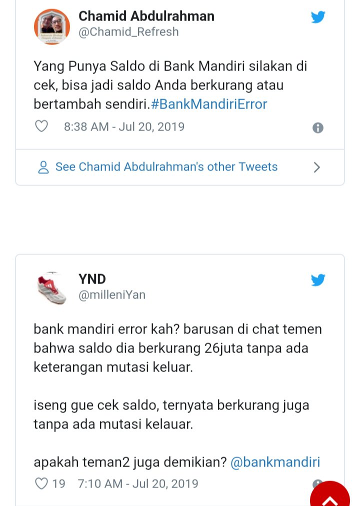 Melalui lini masa Twitter, sebagian nasabah mengaku kebingungan lantaran saldo di rekeningnya berkurang. Sementara nasabah lain mengaku saldo di rekeningnya bertambah dalam jumlah fantastis.