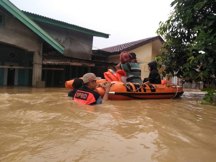 Pantauan di lokasi, terlihat personel BPBD dan TNI Polri berjibaku mengevakuasi korban banjir.