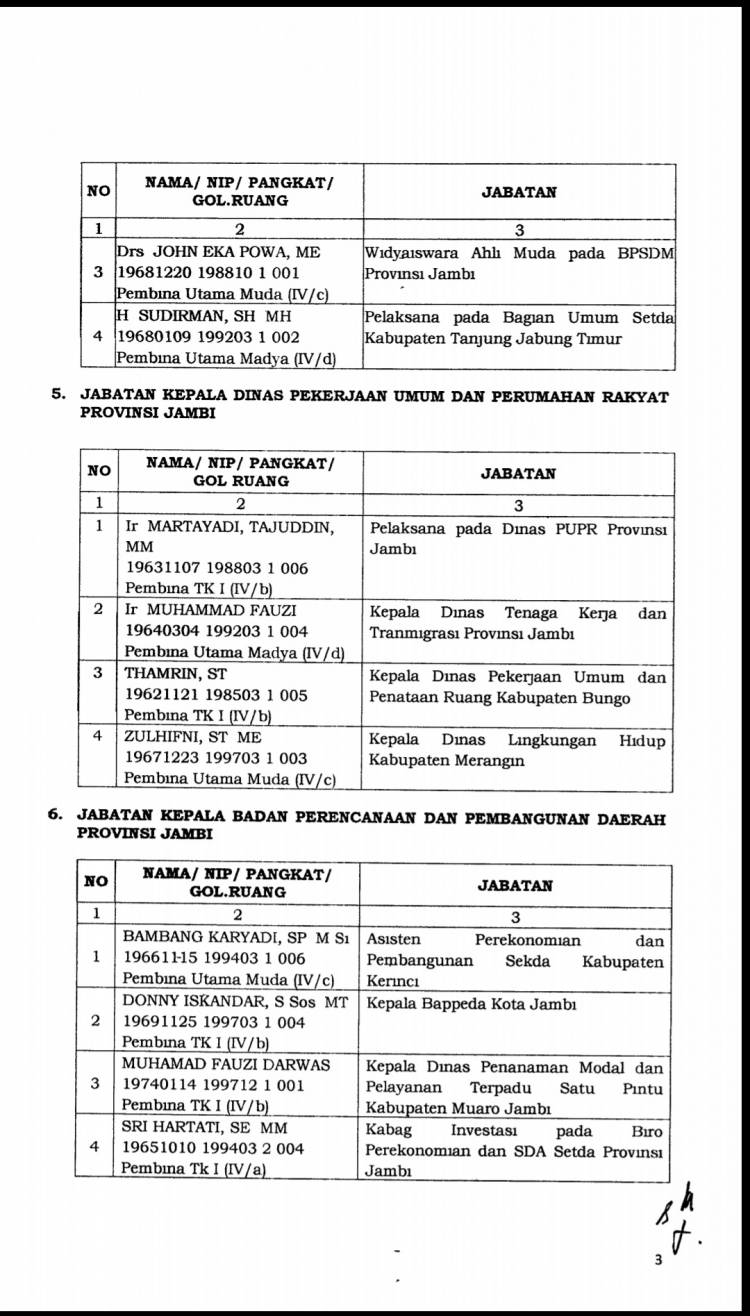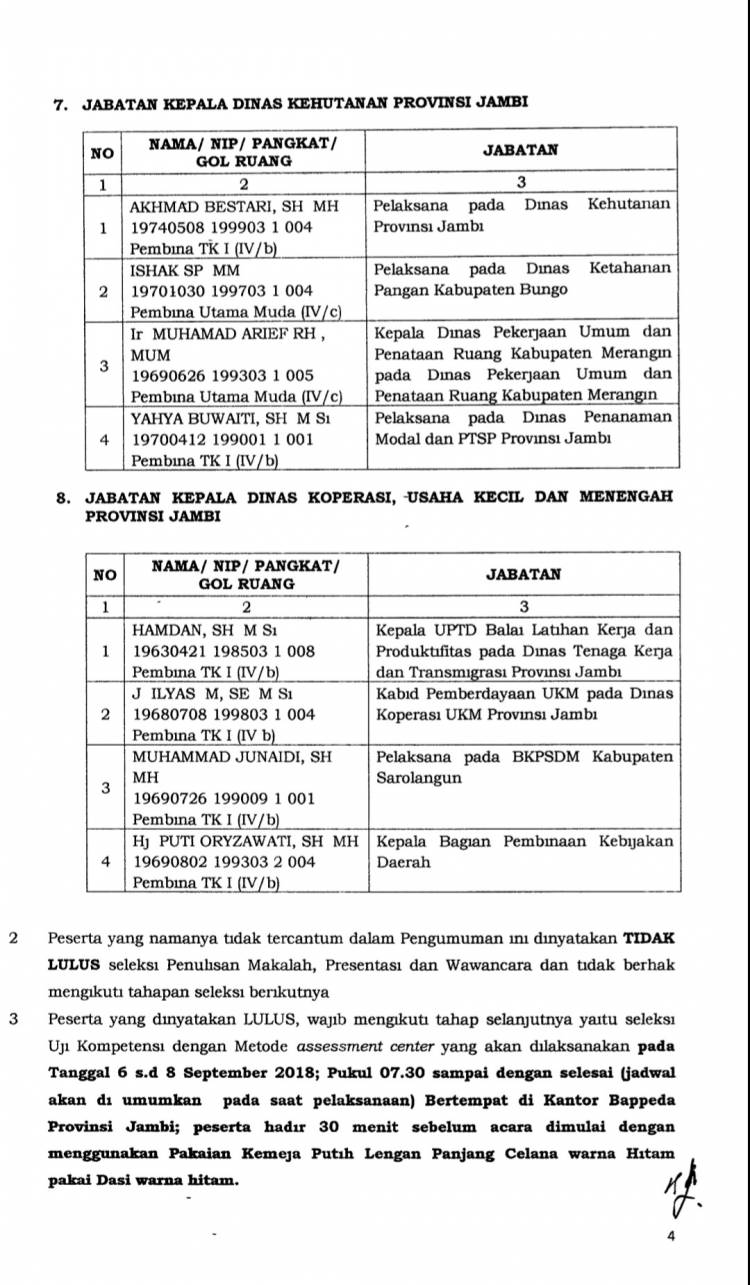 Berikut nama-nama pejabat yang dinnyatakan lulus ujian makalah dan wawancara: