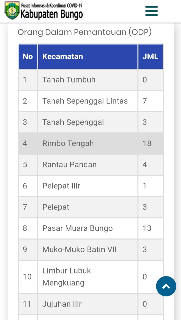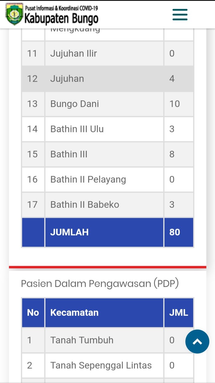 Jumlah ini bertambah dari pekan lalu Berdasarkan laman website http://www.covid19.bungokab.go.id/ pemantauan terus dilakukan agar bisa mendeteksi dini. Sementara jumlah positif COVID-19 di Kabupaten Bungo hingga kini belum ditemukan.