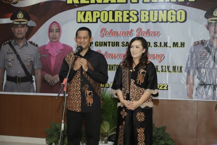 "Walaupun bertugas di tempat yang baru jangan lupakan dengan Kabupaten bungo ini. Pak Guntur Baru 10 bulan lebih sedikit menjabat sebagai Kapolres Bungo, tapi dengan kurun waktu 10 Bulan ini Pak Guntur luar biasa dedikasinya dengan masyarakat Kabupaten Bungo, sekali lagi kami ucapkan ribuan terimakasih kepada Bapak AKBP Guntur Saputro," kata Bupati.