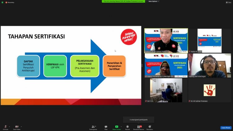 Lembaga Sertifikasi Profesi Komisi Pemberantasan Korupsi (LSP-KPK) kembali memperkuat upaya pembangunan integritas dengan menambah jumlah Penyuluh Antikorupsi tersertifikasi. Dengan metode asesmen jarak jauh (AJJ) LSP-KPK hari ini (22/6) akan menambah lagi 19 Penyuluh Antikorupsi kompeten. Sehingga, dalam kurun satu semester terakhir LSP KPK mencetak total 188 Penyuluh Antikorupsi tersertifikasi.
