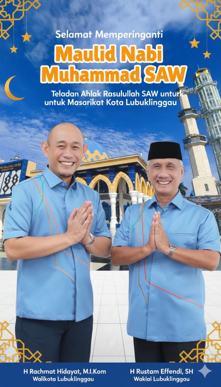 BRITO.ID, BERITA LUBUKLINGGAU – Peringatan Maulid Nabi Muhammad SAW bagi umat Islam bukan hanya sekadar seremonial keagamaan, tetapi juga momentum untuk meneguhkan kembali keteladanan Nabi dalam kehidupan sehari-hari. Hal itu disampaikan Wali Kota Lubuklinggau, H. Rachmat Hidayat, M.I.Kom, saat diwawancarai Brito.id, Jumat, (5/9).
