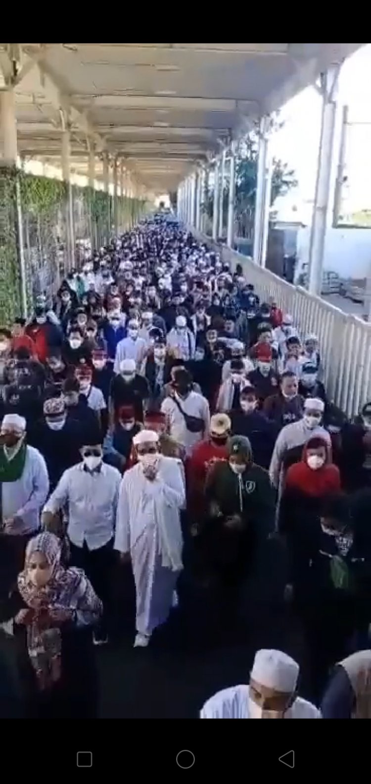 Massa Reuni 212 berjalan menuju ke Jalan Wahid Hasyim arah Tanah Abang, Jakarta Pusat. Mereka mendengarkan pesan Habib Rizieq Shihab (HRS) yang dibacakan oleh salah satu panitia Reuni 212. Pantauan, Kamis (2/12/2021), pukul 09.43 WIB, massa Reuni 212 memenuhi Jalan Wahid Hasyim. Mereka memenuhi jalan sampai kendaraan tidak bisa lewat sama sekali.