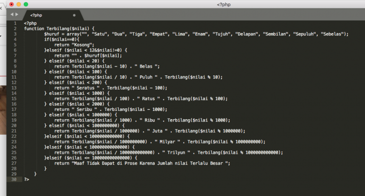 Membuat Fungsi Terbilang Angka dengan PHP