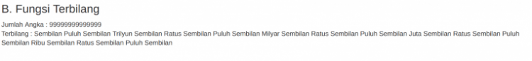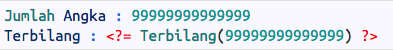 Pada fungsi ini, saya hanya akan memunculkan terbilang hanya sampai trilyun. Tanpa basa basi, berikut adalah contoh skrip nya.