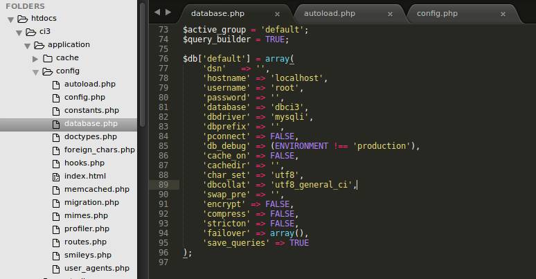 Nah, selanjutnya kita akan mengatur config database. Buka file database.php, masih di direktori yang sama yaitu application/config/. Cek line ke 76. Kamu dapat melihat sintaks seperti sintaks kode di bawah ini: