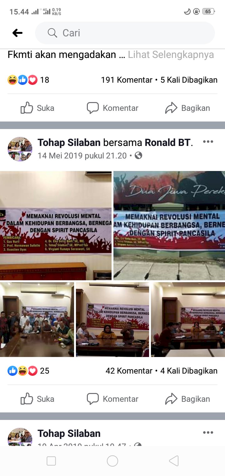 Bahkan pada postingan 14 Mei 2019 yang berisikan foto acara seminar dengan tema Memaknai Revolusi Mental dalam kehidupan berbangsa, bernegara, dengan spirit Pancasila. Terlihat dalam foto itu Tohap Silaban dengan gelar lengkap Sarjana Ekonomi, M Prof/Tax turut dibully oleh netizen.