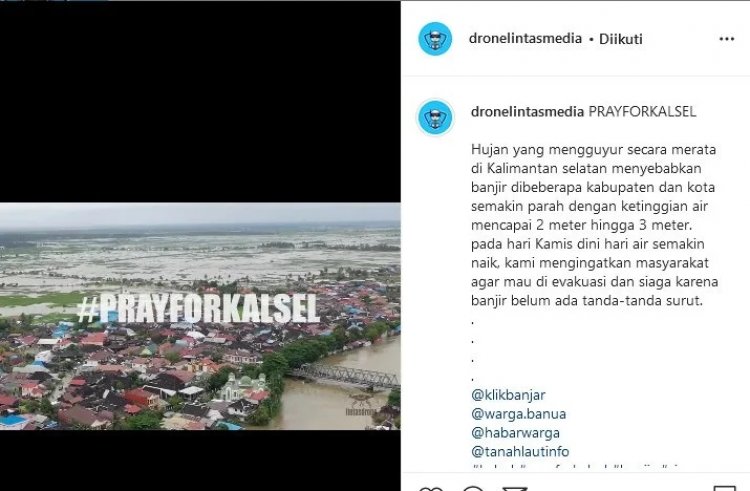 "Hujan yang mengguyur secara merata di Kalimantan selatan menyebabkan banjir dibeberapa kabupaten dan kota semakin parah dengan ketinggian air mencapai 2 meter hingga 3 meter," ditulis pada caption video seperti dilihat INDOZONE pada Jumat (15/01).