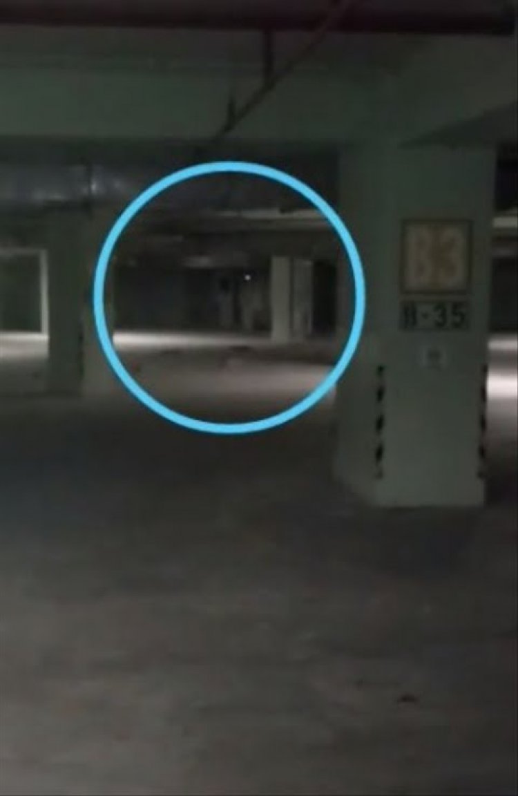 Tiba-tiba, dia melihat ada sosok berwarna putih yang diduga merupakan kuntilanak, berdiri di sebelah pilar basement.