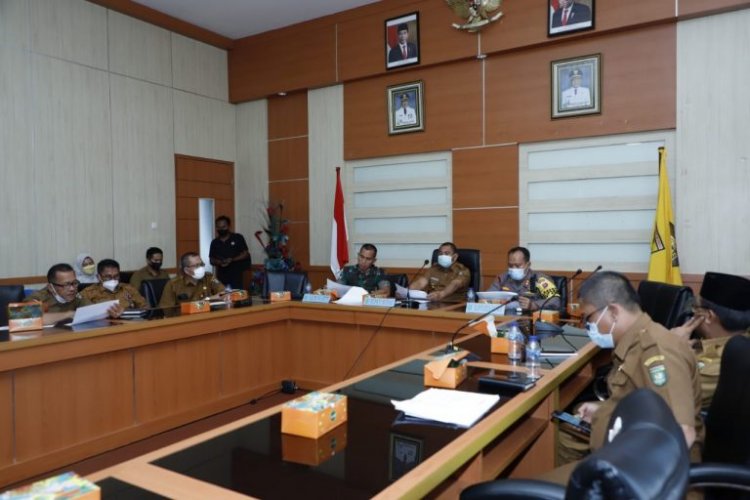Bupati Bungo H Mashuri yang didampingi Kapolres dan Dandim 0416/Bute berserta jajaran Forkompinda hadir mengikuti Zoom Meeting yang dipimpin oleh Presiden Joko Widodo di Ruang Rapat Utama kantor Bupati Bungo, Senin (7/2).