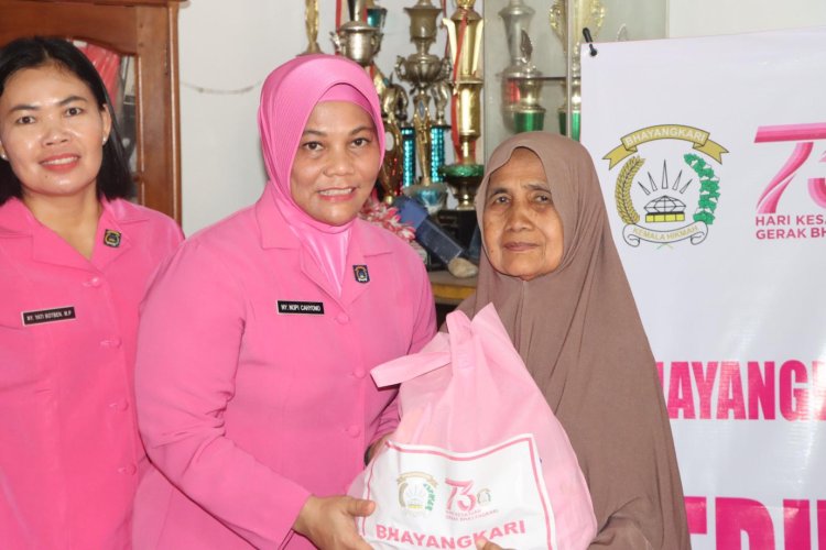 BRITO.ID, BERITA BUNGO – Dalam rangka memperingati Hari Ulang Tahun (HUT) Bhayangkara ke-79, Kapolres Bungo AKBP Natalena Eko Cahyono, S.Kom., M.Si bersama Ketua Bhayangkari Cabang Bungo beserta jajaran menyalurkan 75 paket sembako kepada masyarakat yang membutuhkan.
