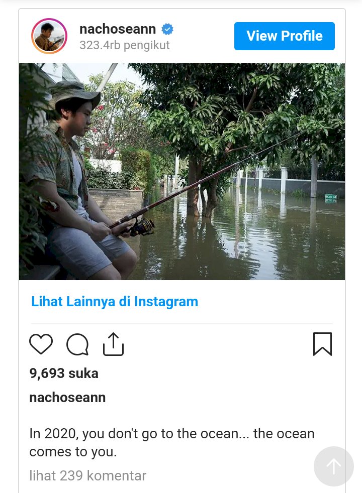 "In 2020, you don't go to the ocean... the ocean comes to you (Di 2020, kamu tak pergi ke lautan... lautan datang kepadamu)," demikian tulis Nicho di postingannya tersebut seperti dilihaat detikcom.