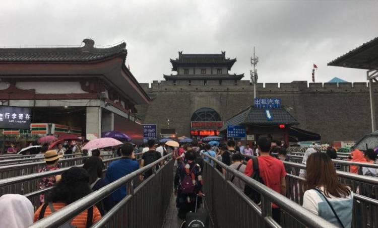Kebanyakan dari mereka baru turun dari kereta api. Memang yang paling direkomendasikan bagi yang ingin berlibur di Kota Xi'an adalah menggunakan kereta api dibandingkan dengan pesawat.