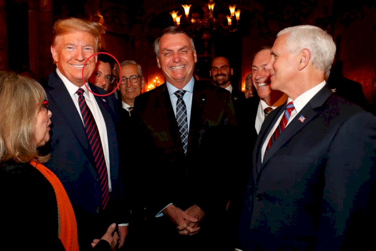 Sekretaris Komunikasi Presiden Brasil, Fabio Wajngarten, (dilingkari merah) penderita virus corona melakukan kontak dengan Presiden Donald Trump. Foto: Alan Santos vía Ulan / Pool / Reuters