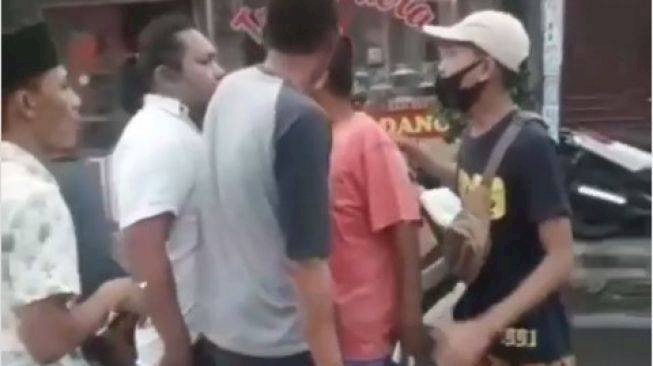 "Kamu jangan ngancam-ngancam!" kata lelaki itu mendekat ke tukang parkir yang mengenakan masker.