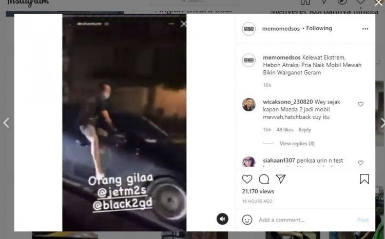 Aksi seorang pria mengendarai mobil sambil melakukan atraksi keluar dari kaca mobil viral di media sosial. Banyak warganet geram dengan aksi berbahaya tersebut. Atraksi pria tersebut diunggah oleh akun Instagram @memomedsos.