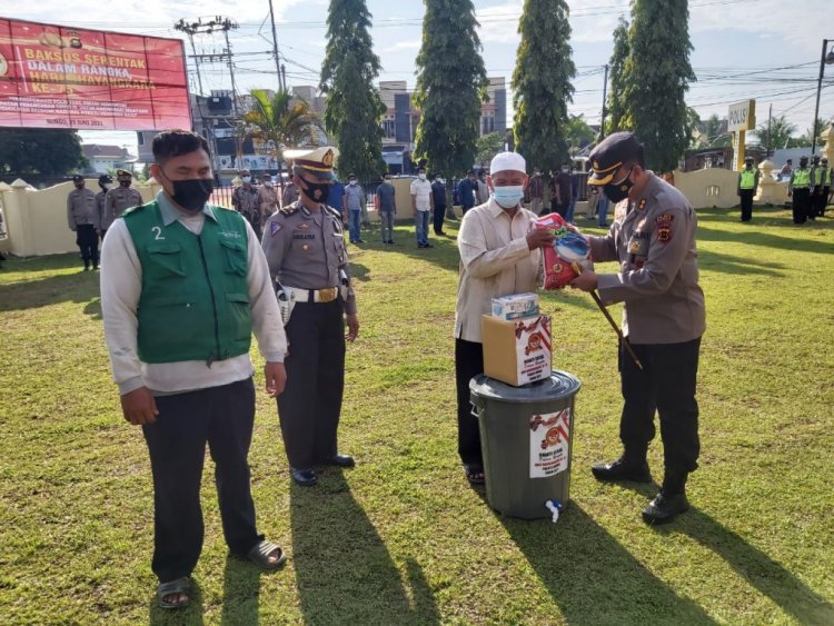 BRITO.ID, BERITA BUNGO - Dalam rangka menyambut Hari Bhayangkara ke-75, Polres Bungo menggelar kegiatan Bakti Sosial (Baksos) serentak di 12 Polsek dan jajarannya. Dalam kegiatan ini tetap menerapkan Protokol Kesehatan yang ketat.