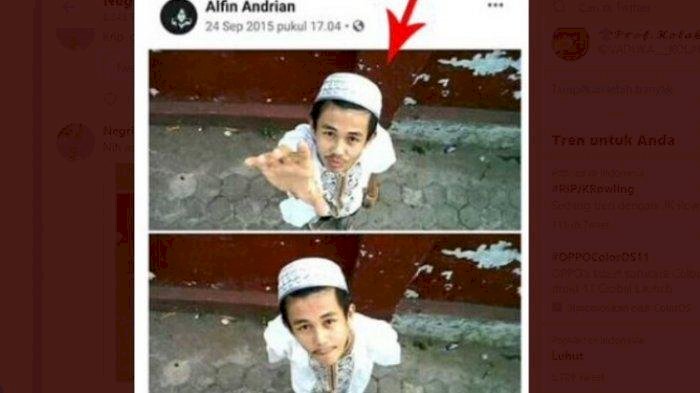 Dalam foto editan tersebut, pelaku penusukan digambarkan memegang bendera hitam panji Rasulullah.