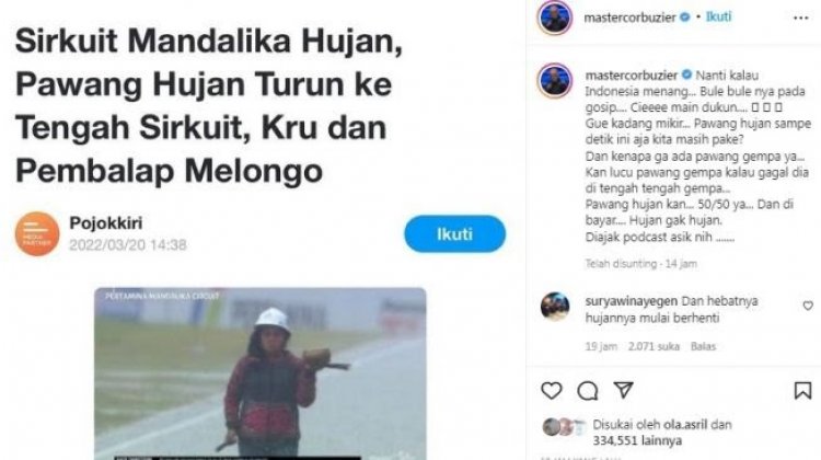 Sementara yang lain meminta Deddy Corbuzier menghargai keberadaan pawang hujan sebagai petugas resmi MotoGP Mandalika.