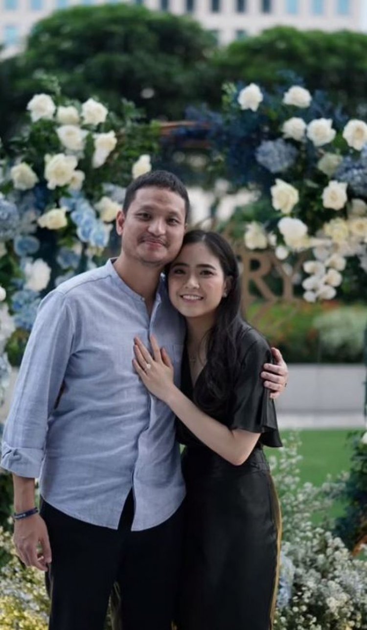 Keduanya tampak bahagia usai melakasanakan lamaran yang super romantis itu.