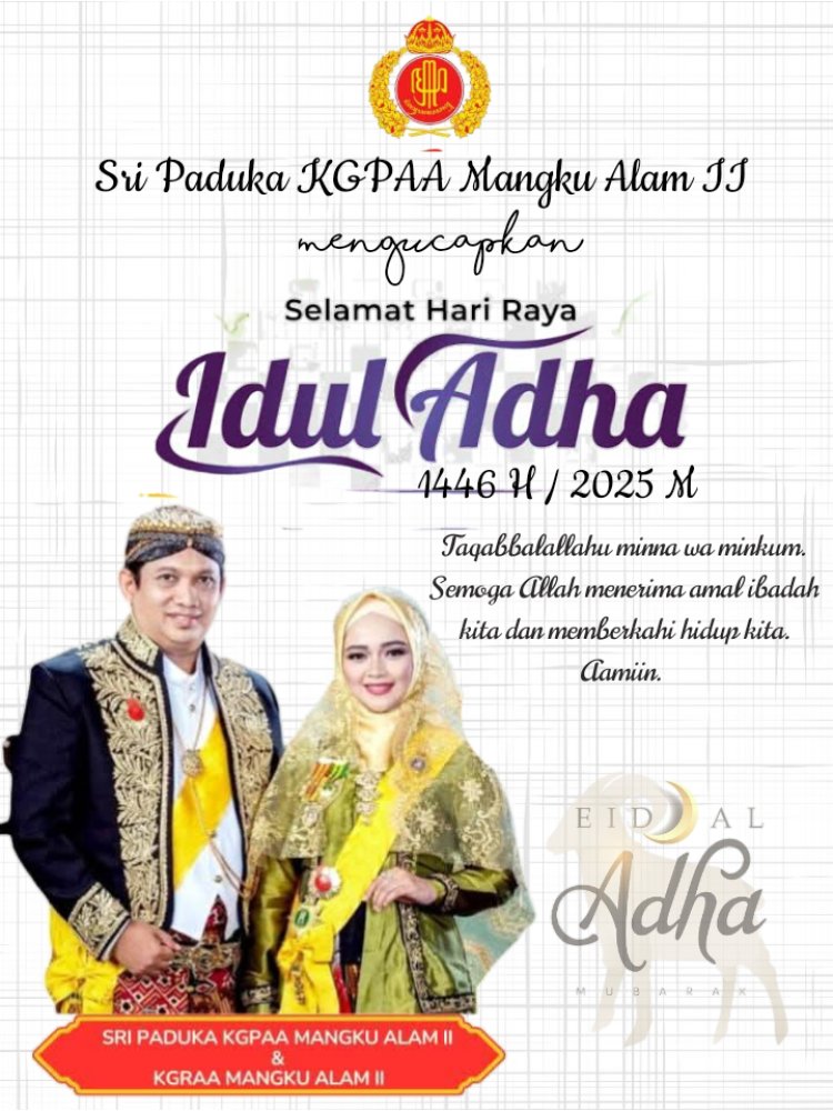 "Saya, Sri Paduka KGPAA Mangku Alam II, mengucapkan Selamat Hari Raya Idul Adha 1446 Hijriah. Semoga hari yang suci ini membawa berkah, kedamaian, dan keteguhan iman bagi kita semua," ujar beliau dalam pernyataan resminya, Rabu (5/6/2025).